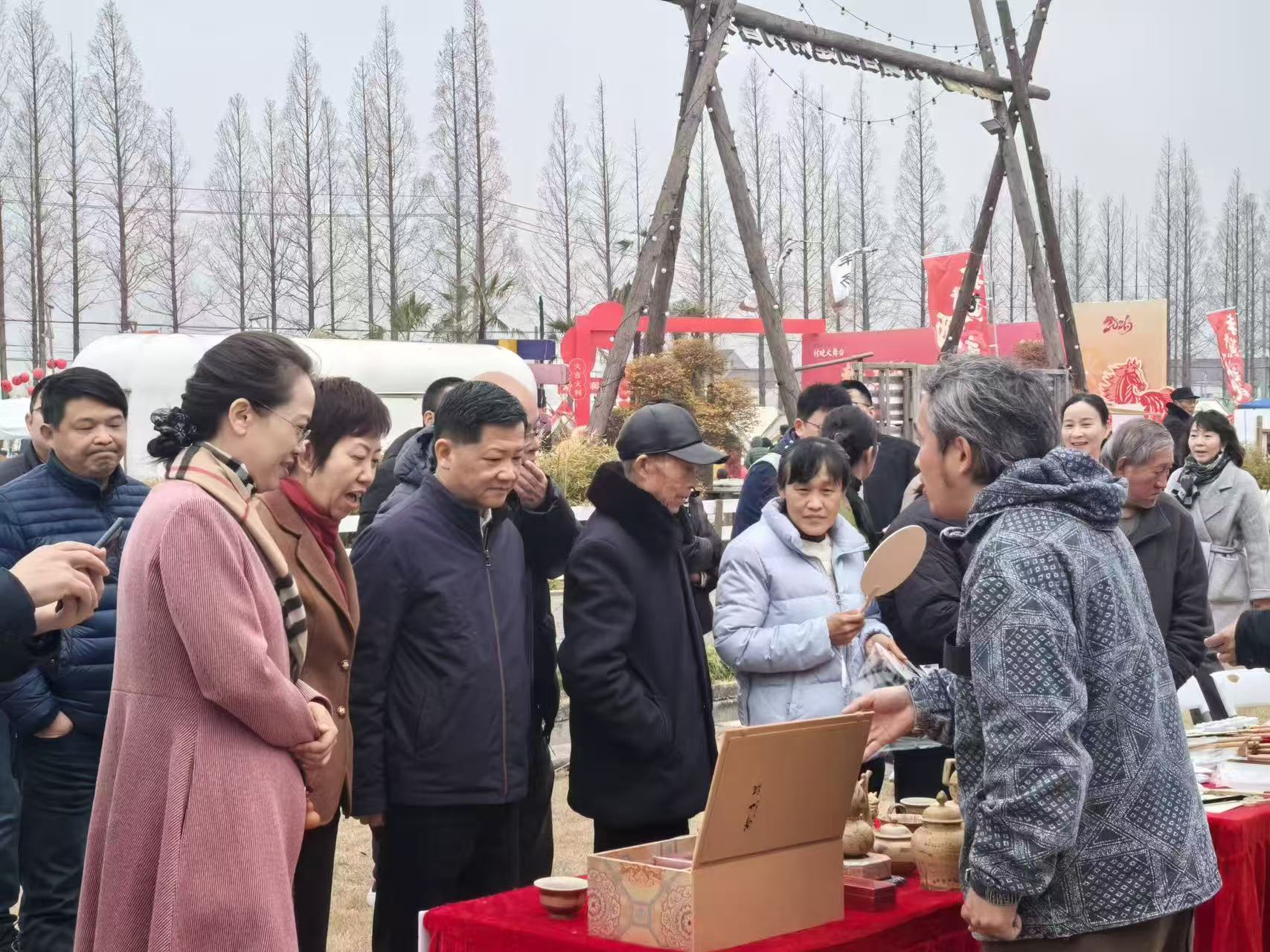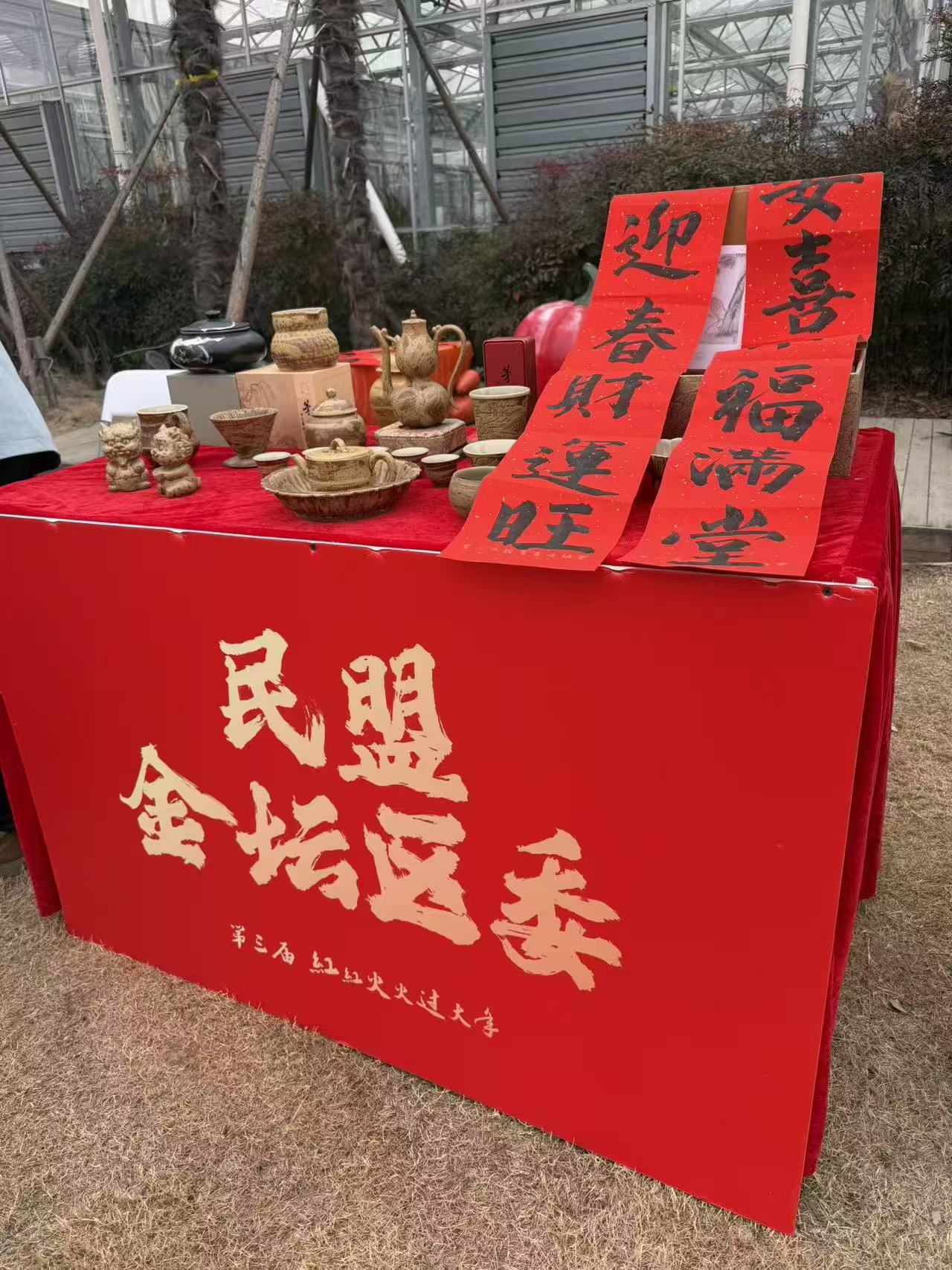 新春纳福,佳酿传情,文化赋能。近日,“2026红红火火过大年”暨第三届奔牛黄酒文化民俗活动在新北区奔牛镇史陈家村热闹开幕,金坛民盟华罗庚支部盟员刘昌亮携“茅山泥”陶瓷作品亮相,以陶为媒串联陶瓷文化与黄酒民俗,为这场乡村文旅盛宴注入独特的文化韵味,成为活动现场一道亮眼的风景线。