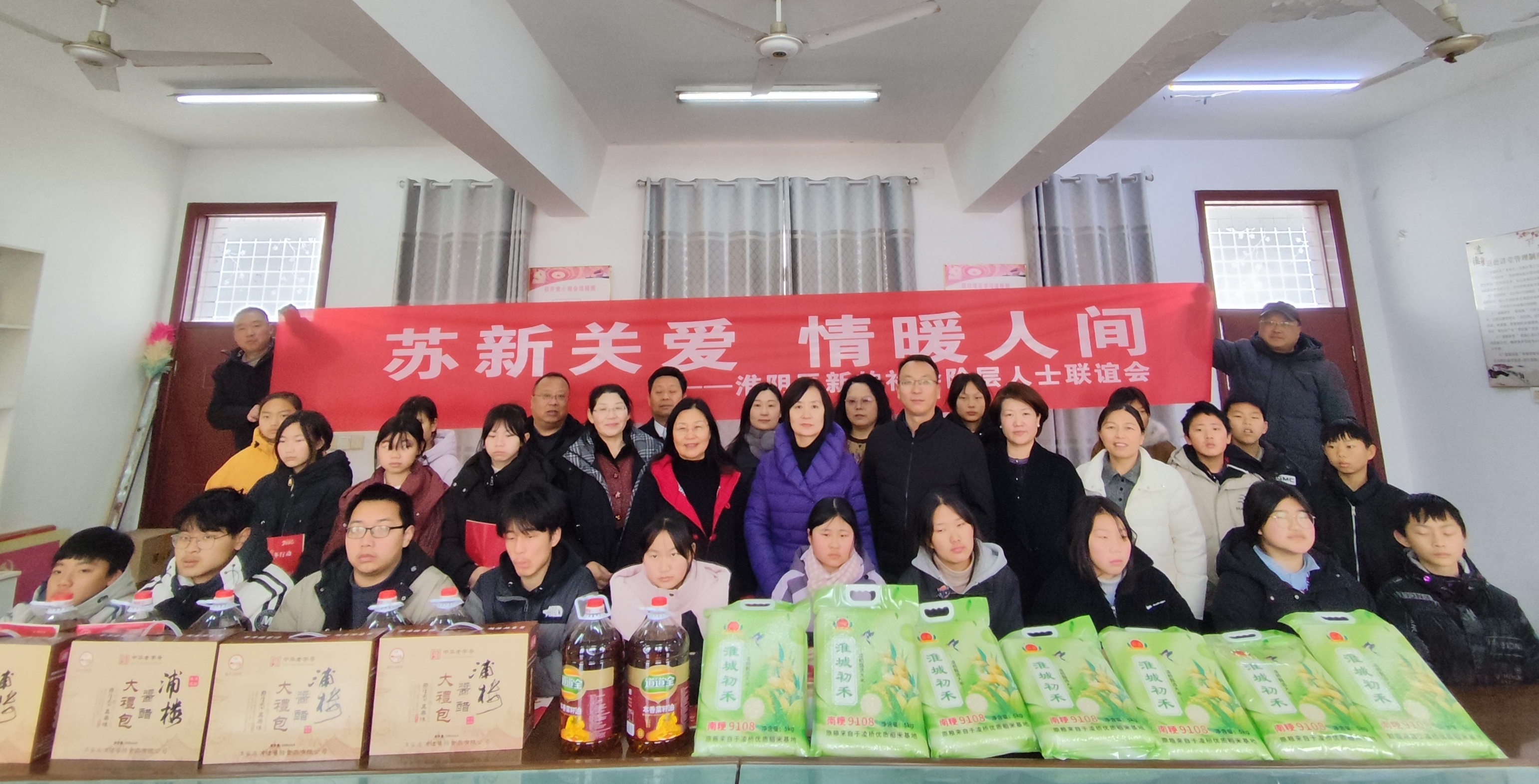 在徐溜中学,慰问组与二十名学生代表亲切交流。朱春霞勉励学子们立志成才、回馈社会,赵欣细心询问孩子们的学习生活情况。民盟淮阴区基层委员会与区新联会向同学们赠送新春礼包,寄托对青少年健康成长的深切关爱。