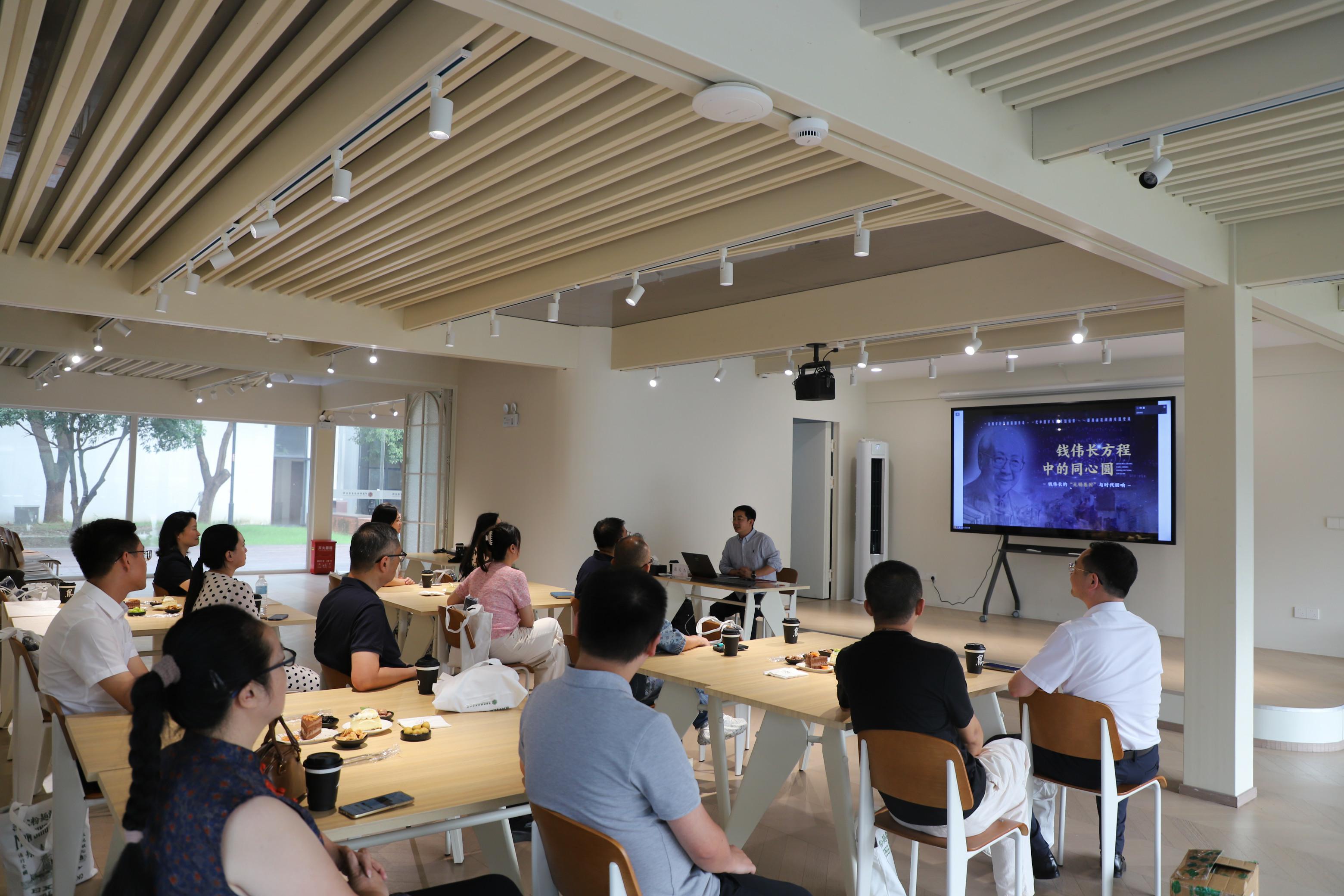参观结束后,“钱伟长方程中的同心圆”民营经济专题课如期开讲。课堂上,讲师以钱伟长先生的生平事迹为主线,生动讲述了这位民盟先辈在国家危难之际,毅然放弃挚爱的文史专业、转学物理投身科研的家国情怀;建国后,他又积极参与国家立法、深耕教育科研领域,用毕生心血践行“科学救国、教育兴邦”的使命担当。