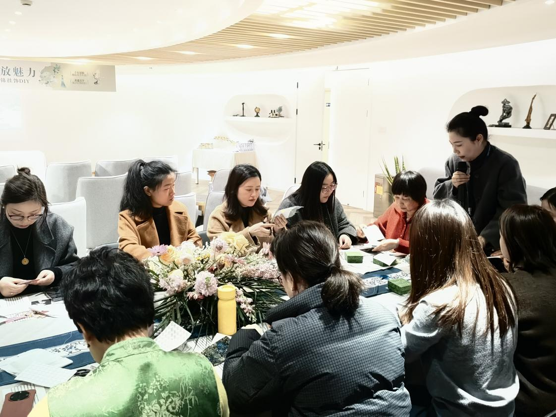 随后进入非遗宋锦挂饰DIY体验环节。在专业老师的指导下,盟员们穿针引线、精心制作,将传统非遗技艺与春日美学相融。一枚枚精致典雅的宋锦挂饰在手中成型,既是匠心手作,也是专属纪念,大家在沉浸式体验中感受传统文化之美,在欢声笑语中增进彼此情谊。
