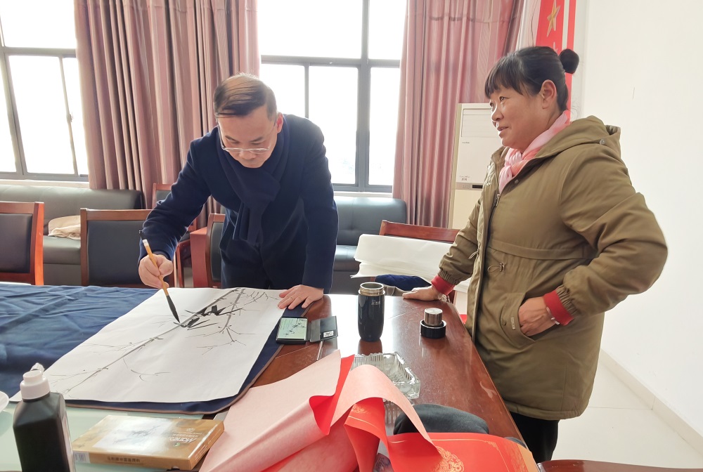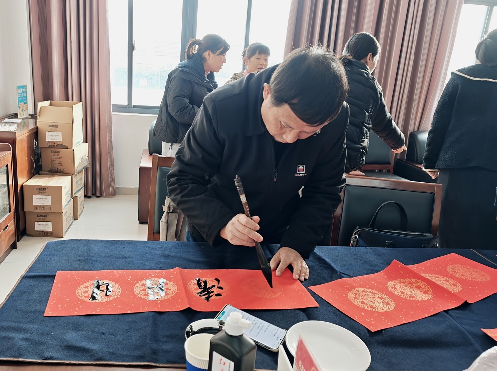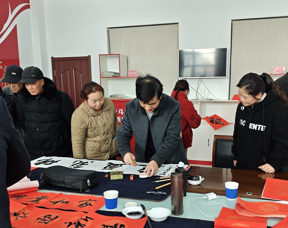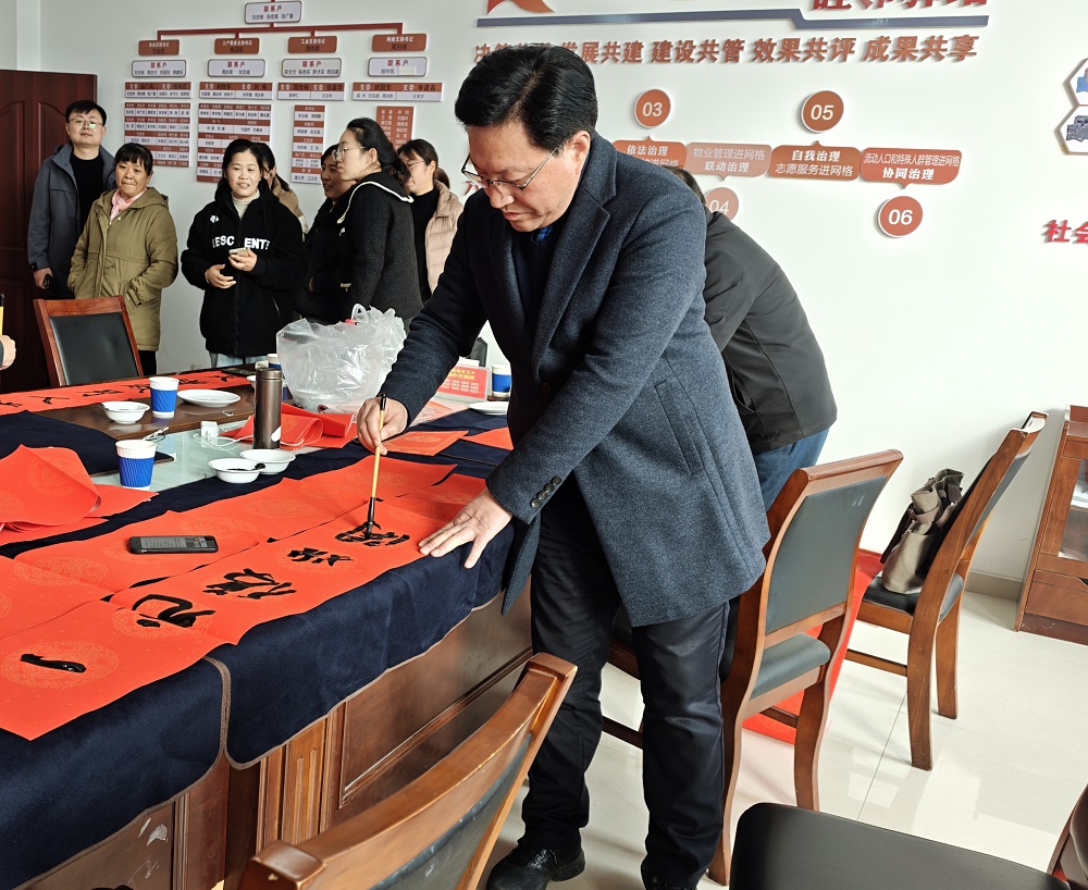 在兴龙社区党群服务中心,书画家们聚焦社区群众文化需求,以笔为媒,以画寄情,一幅幅寓意吉祥的书法、对联和画作,不仅承载着书画家们的真挚祝福,更让基层群众近距离感受到中华优秀传统文化的独特魅力。活动以文化为纽带,既丰富了社区群众的精神文化生活,也为乡村振兴注入了浓郁的文化活力,彰显了民盟在助力地方发展中的责任与担当。
