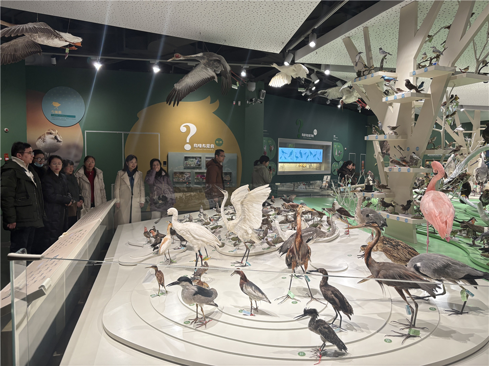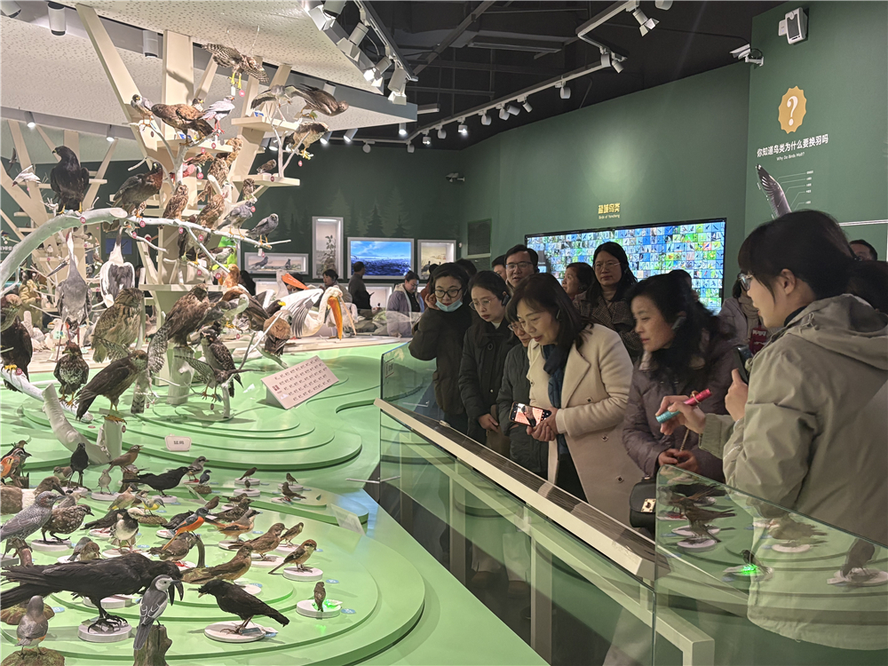冬日暖阳映照湿地,同心奋进正当其时。盟员们首先走进由盐城火车站旧址改造而成的中国黄海湿地博物馆进行参观学习。博物馆保留了原火车站的拱形结构,以丹顶鹤展翅为灵感,是我市城市更新与生态魅力融合的样板。在海陆天成、天际旅程、河海交响、湿地家园、共同守护五个主题展厅内,盟员们通过庞大的抹香鲸骨架、珍稀的丹顶鹤和麋鹿标本、动态呈现400多种候鸟迁徙路径的数字沙盘,进行了一次深入的黄海湿地生态之旅。参观过程中,盟员们不时交流讨论,深刻感受到盐城在推进人与自然和谐共生、践行生态文明理念的担当与责任。
