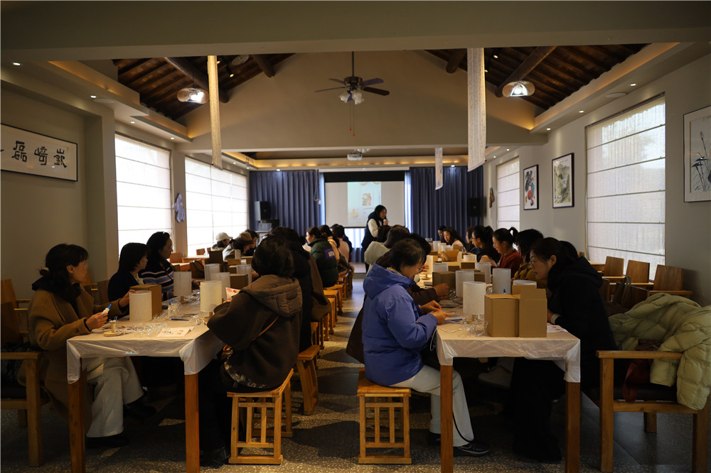 参观结束后是创意手工压花台灯制作环节。在专业老师的讲解指导后,大家纷纷动手实践,选取各色干花、叶片,充分发挥想象力与创造力,精心搭配、巧妙粘贴,将自然之美定格在灯罩之上。指尖翻飞间,原本普通的台灯底座与干花,在盟员们的巧手下变成了一盏盏独一无二、雅致精美的压花台灯。大家相互交流制作心得,分享创意灵感,现场氛围温馨而热烈。