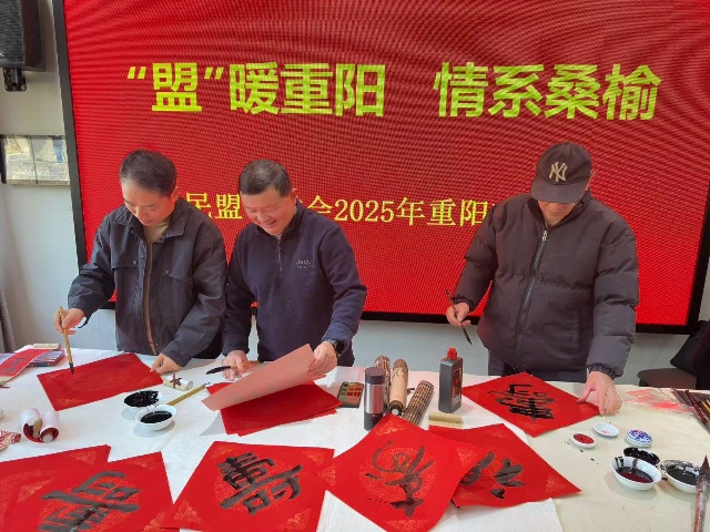 茶话之余,活动特别安排了书画创作环节。盟内书画家们挥毫泼墨,以笔寄情,以字达意,一幅幅饱含深情、笔力遒劲的“福”“寿”字跃然纸上,凝聚着对老人们健康长寿、生活幸福的美好祝愿。墨香四溢中,书画家们将写好的作品逐一赠送给在场的老人们,让他们深切感受到了组织的温暖和传统文化的魅力。