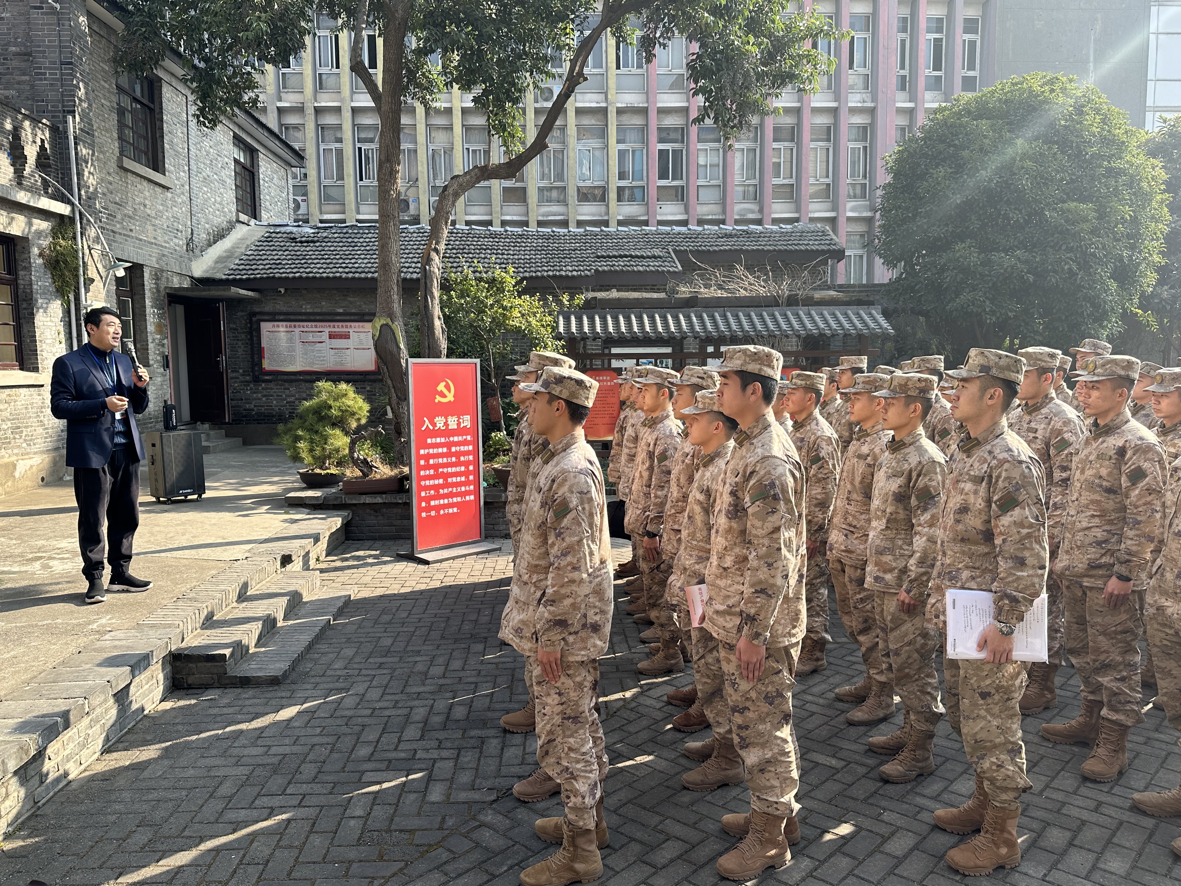 1月16日上午,一场别开生面的冬季红色教育授课在丹阳拉开帷幕,民盟丹阳文化支部盟员孙国武应邀为陆军工程大学160名官兵带来沉浸式的红色教育体验,将理论学习与实地感悟深度融合,为官兵们筑牢信仰之基、补足精神之钙。