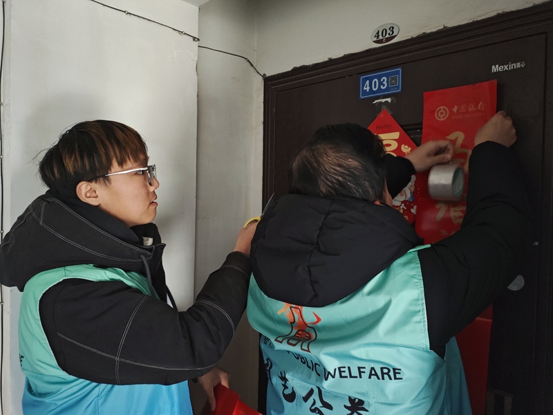活动中,志愿者们还为该家庭送去春联、福字等新春用品,并现场帮助张贴,让原本冷清的家中洋溢起浓浓的节日氛围。张召振的儿子康康(化名)看到“福”字入户,脸上露出了久违的开心笑容。面对志愿者们的关爱,张召振及其家人深受感动,表示这份温暖不仅缓解了经济压力,更增添了战胜困难的信心和勇气。