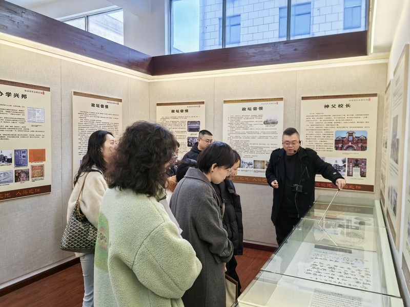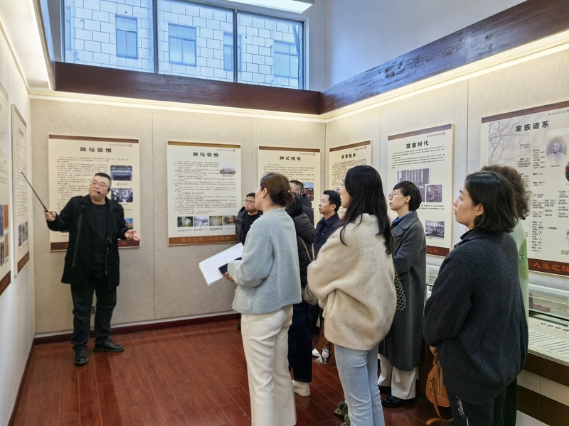 活动中,盟员们首先走进马相伯纪念馆。在讲解员的细致引导下,透过一幅幅珍贵历史照片、一件件岁月沉淀的文献实物,深入了解这位被誉为“国家之光,人类之瑞”的近代教育先驱、爱国老人的传奇一生。大家驻足聆听马相伯先生“毁家兴学”创办震旦学院、复旦公学的壮举,深刻感悟其“读书不忘爱国,爱国不忘读书”的核心理念,以及以教育救国、毕生投身爱国救亡事业的拳拳赤子之心,为先生跨越百年的家国情怀深深动容。