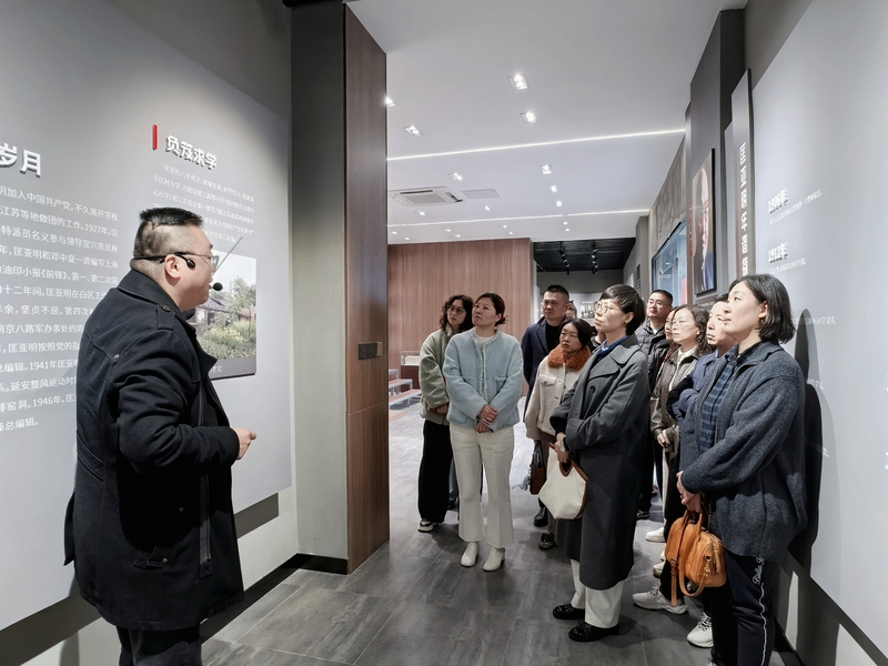 随后,盟员们来到匡亚明纪念馆,系统学习这位丹阳籍著名革命家、教育家的生平事迹与卓越贡献。从投身革命到深耕高等教育、推动教育改革,潜心学术研究、传承传统文化,匡亚明先生“严谨、求实、勤奋、创新”的治学精神与“以教育振兴民族”的坚定信念,通过展馆中的影像资料、手稿文献生动展现。盟员们边走边看、边学边思,对先生光明磊落、追求真理的一生致以崇高敬意。