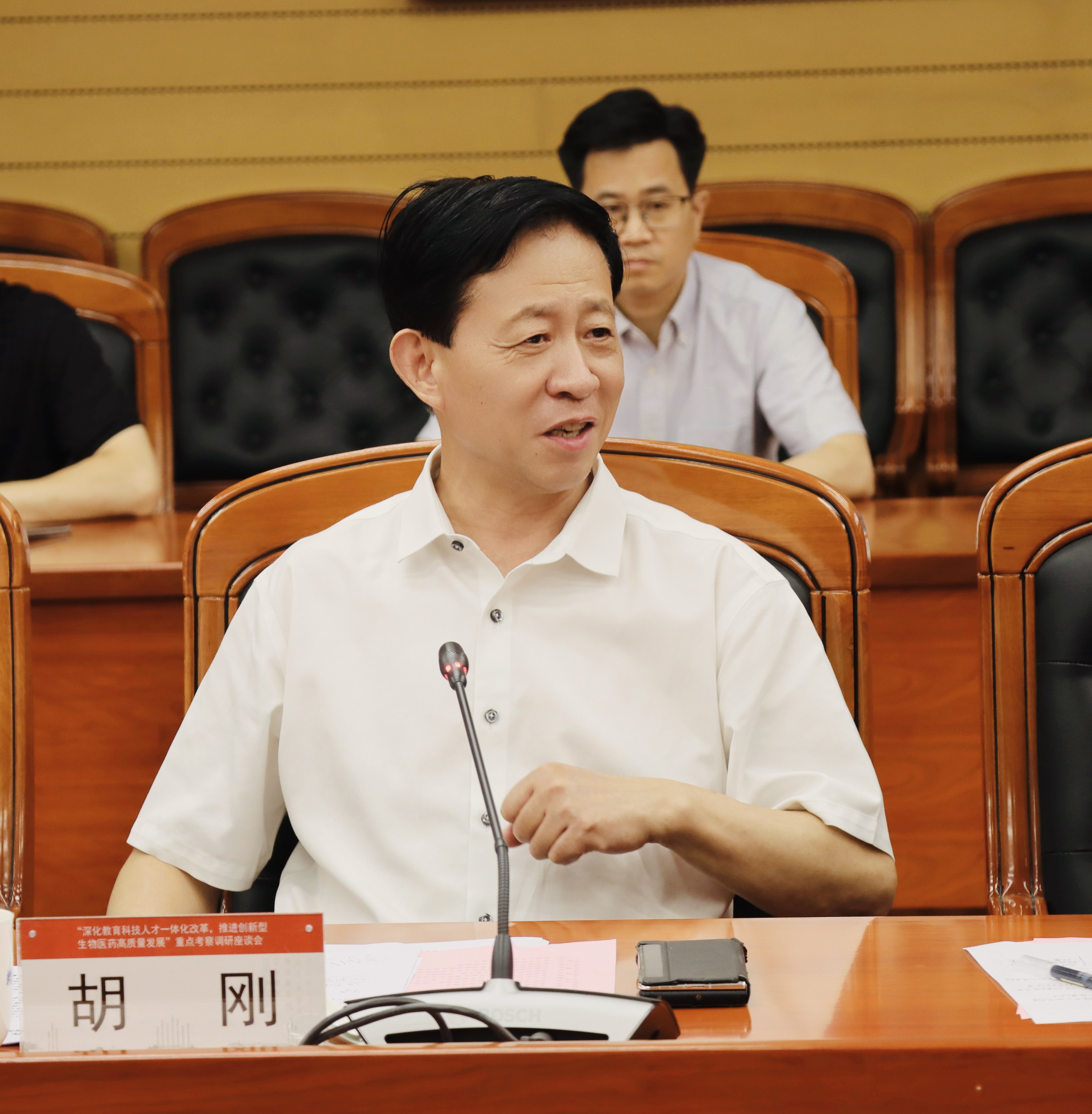 胡刚在座谈会上代表调研组作了总结讲话。他指出,在全省深入学习贯彻习近平总书记在今年全国两会期间重要讲话精神和中共江苏省委十四届九次全会精神的关键时刻,民盟省委会根据中共江苏省委批示,围绕“深化教育科技人才一体化改革,推进创新型生物医药高质量发展”开展重点调研,具有重要意义。生物医药产业作为国家战略性新兴产业,对守护人民生命健康、驱动经济转型升级意义重大,是江苏一体推进教育科技人才发展的发力点,也是在推动科技创新与产业创新融合上“打头阵”的重点领域。他强调,江苏是高等教育大省,也是生物医药产业大省,江苏民盟必须牢记习近平总书记的谆谆嘱托,在助力“经济大省要挑大梁”中进一步彰显中国新型政党制度显著优势,以具有前瞻性、可操作、能落地的政策建议扎扎实实助推我省生物医药产业高质量发展。