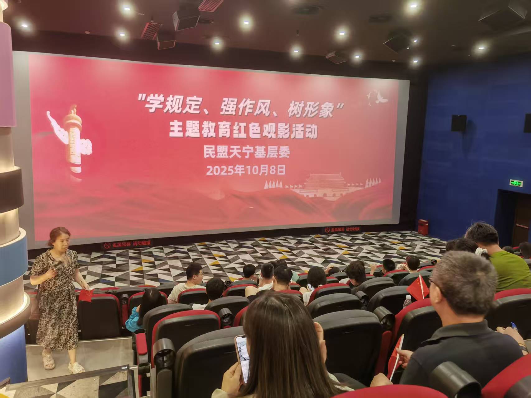 国庆期间,为深化爱国主义教育,深化思想政治引领,开展“学规定、强作风、树形象”主题教育现场教学。民盟天宁区基层委组织盟员观看电影《志愿军3:浴血和平》,以观影活动形式凝聚盟员奋进力量。
