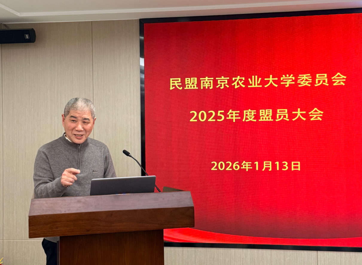 民盟南京农业大学委员会主委严火其作2025年度盟务工作报告,他从思想与组织建设、参政议政与社会服务、盟务活动等方面,详细介绍了一年来取得的工作成果,客观分析了工作中存在的问题和不足,明确了2026年的工作思路与具体举措。