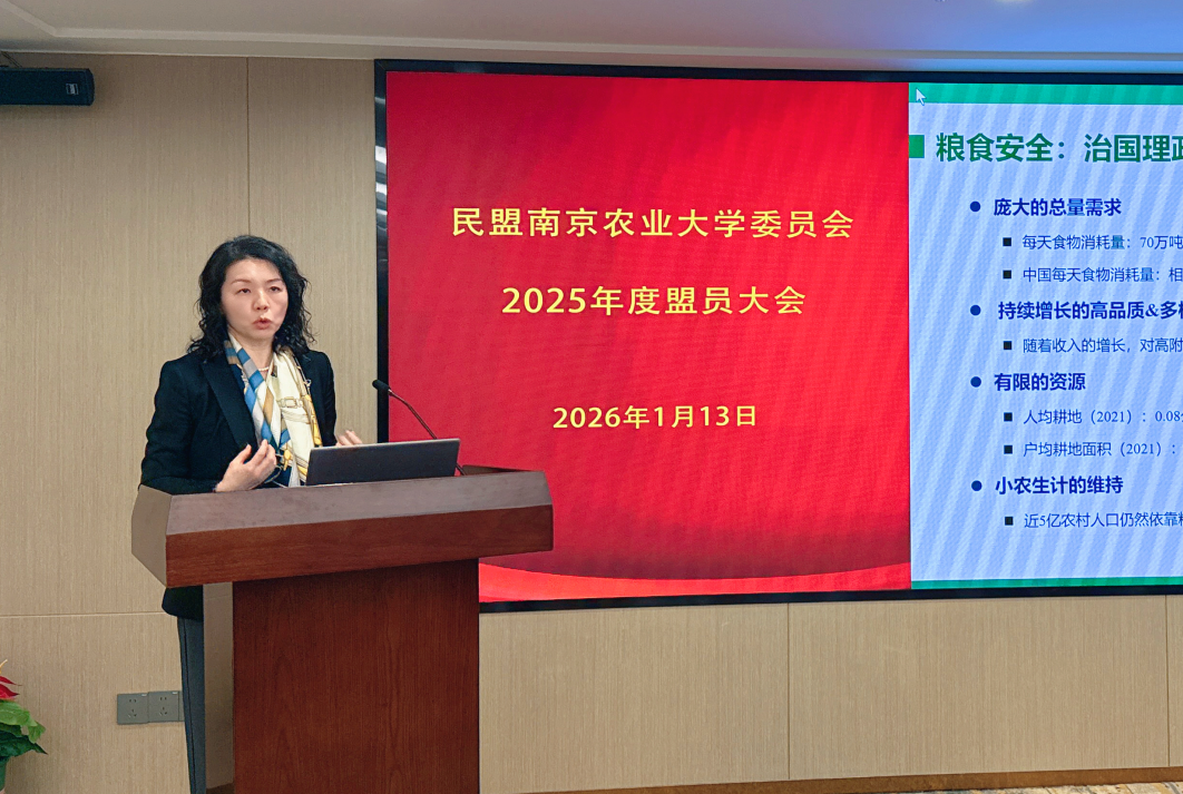 会上,盟员朱晶教授作《世界粮食贸易与中国粮食安全》专题讲座,她围绕世界粮食贸易格局演变、中国粮食安全面临的挑战与机遇等方面进行了深入分析和解读。报告视野宏阔、数据翔实、分析透彻,为全体盟员深刻认识粮食安全新形势、明晰农业科教工作者的责任使命提供了重要启发。