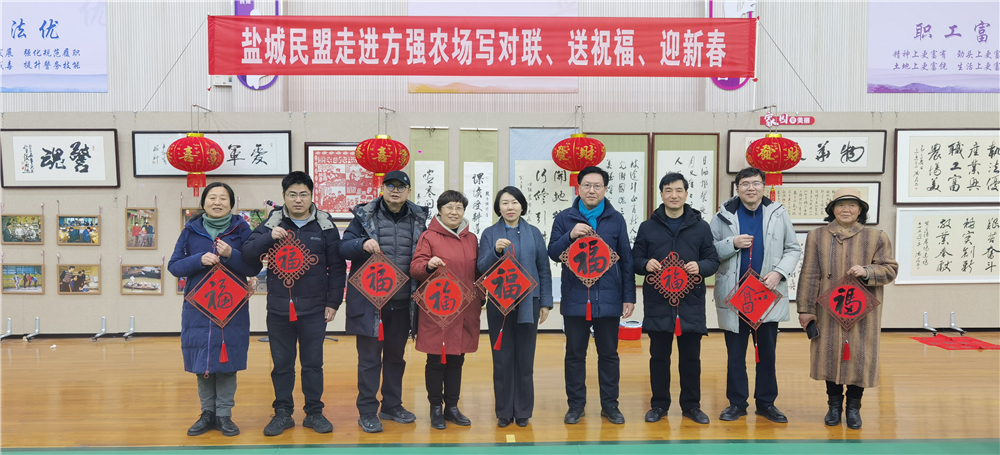 2月2日,在民盟盐城市委会专职副主委兼秘书长梅月华的带领下,盟员书法家卞玉芳、郑尧春、卢高、夏晔、李森梅、徐万虎以及应邀参加的方强戒毒所民警母亲、左手书法家王萍先后走进大中农场和方强戒毒所(方强农场),开展“新春送福”活动。方强戒毒所党委副书记、政委杨学农,大中农场领导裴兆庭、戴露等参加活动。