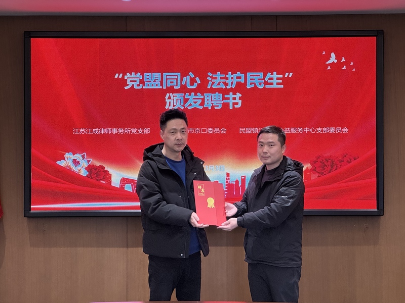 为深入贯彻新时代基层社会治理创新要求,扎实推进“十五五”开局之年民生保障与基层治理重点工作,探索“党建引领、盟建助力、公益赋能”融合发展新路径,3月3日下午,“党盟同心法护民生”共建仪式在江苏江成律师事务所举行。