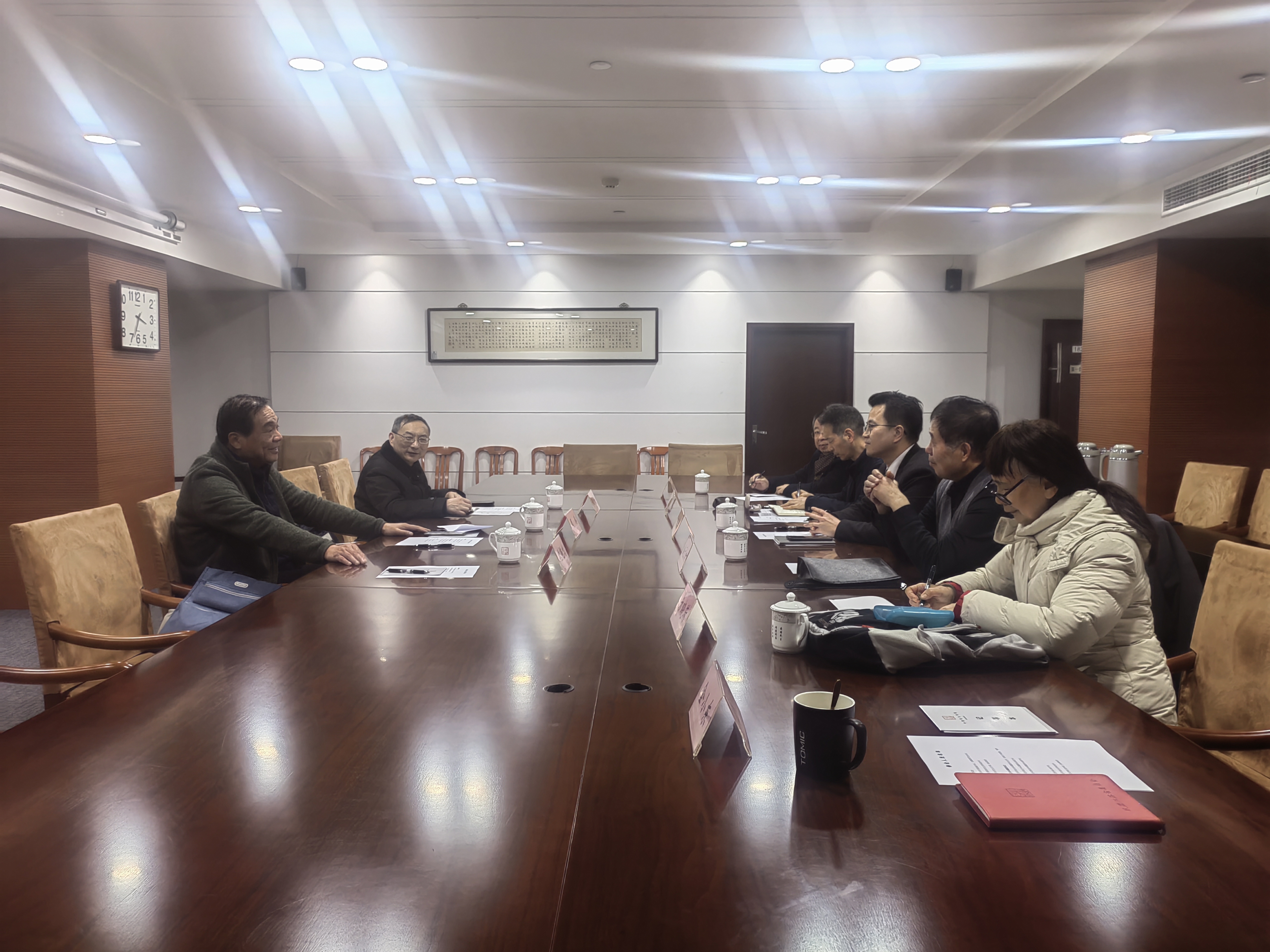 3月17日,江苏省楹联研究会会长周游一行到访民盟江苏省委会机关,双方就楹联艺术传承、创作提升及合作发展等议题开展座谈交流。民盟江苏省委会秘书长占飞富、民盟省委会诗词楹联协会会长徐子方出席会议,占飞富主持座谈会。